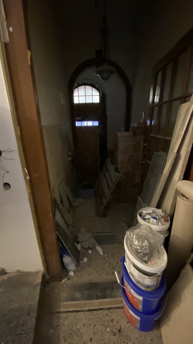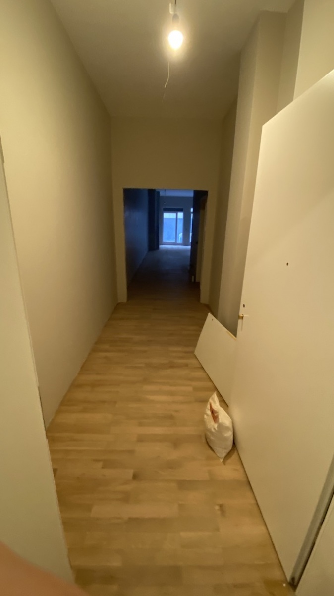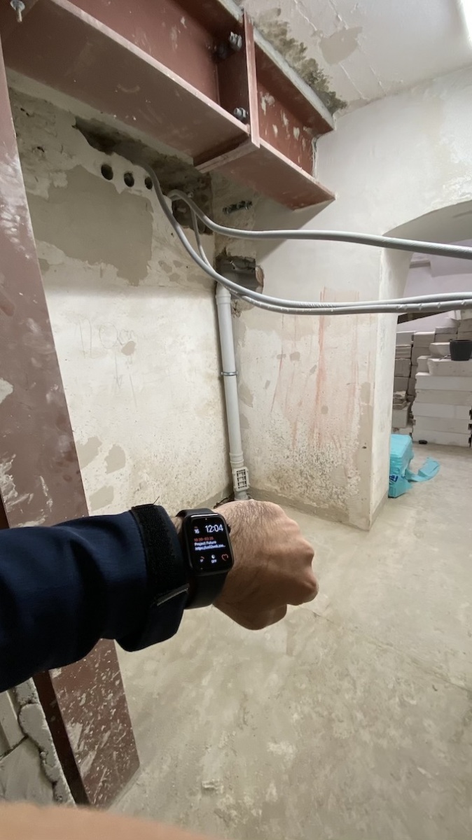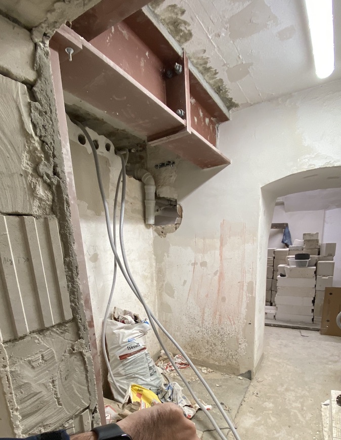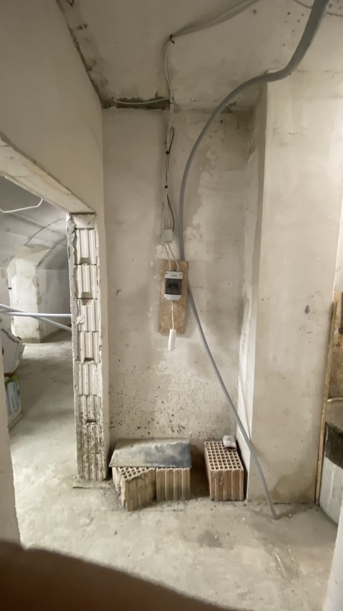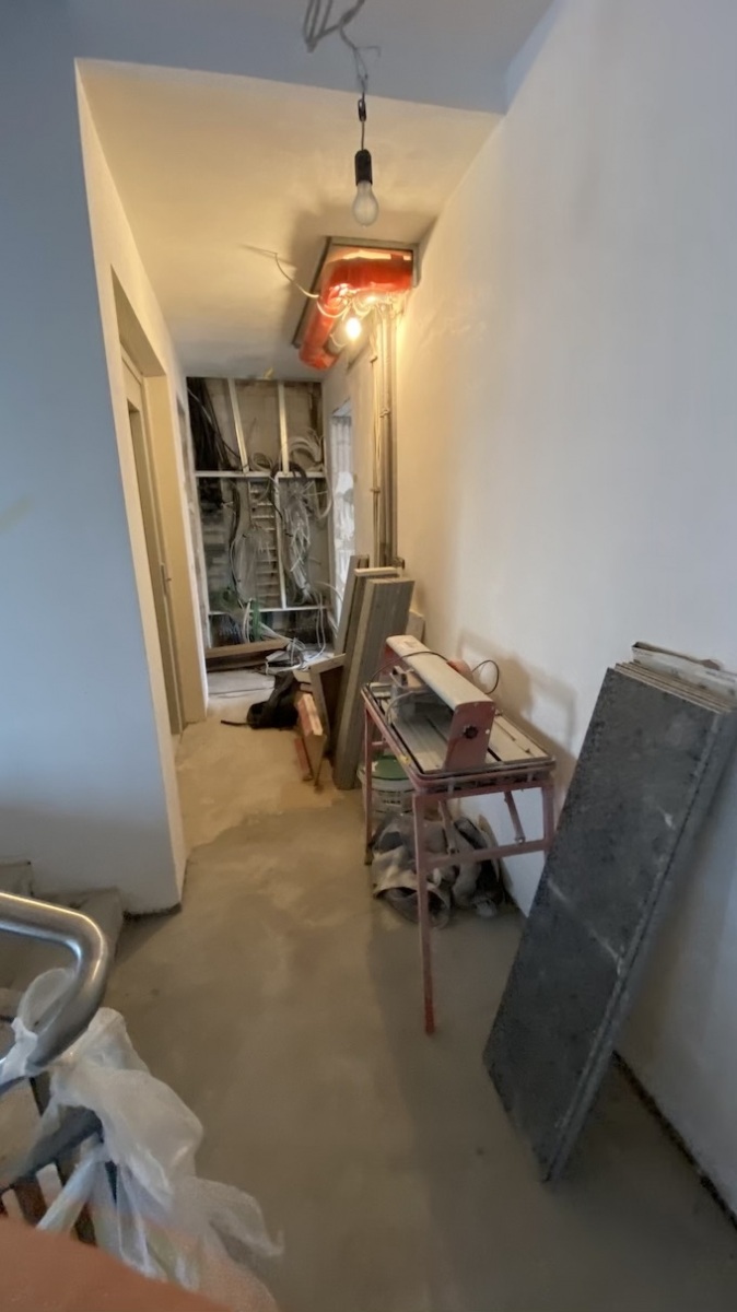 Die Entwässerungsleitungen im Kellergeschoss für die Waschmaschinen in den Bewohnerkellern wurde verlegt, der Keller ausgeräumt