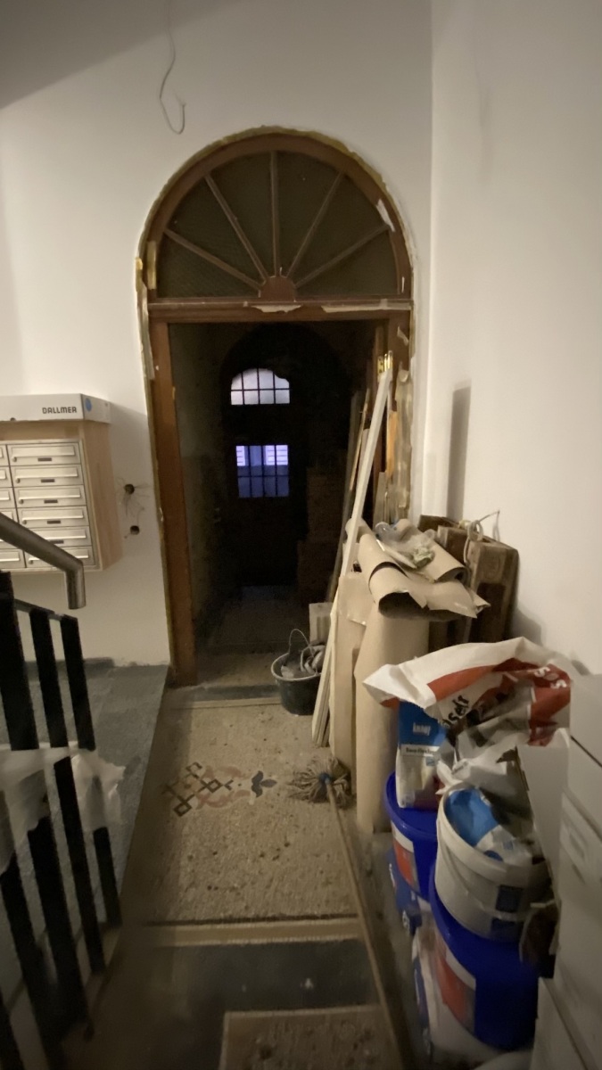 Die vordere Haustüre bekommt nächste Woche die neue Verriegelung und Sicherheitsverglasung, aktuell ist aber die vordere Türe benutzbar und das Haus kann ohne Schlüsselkarte der D——– V—————— betreten werden.