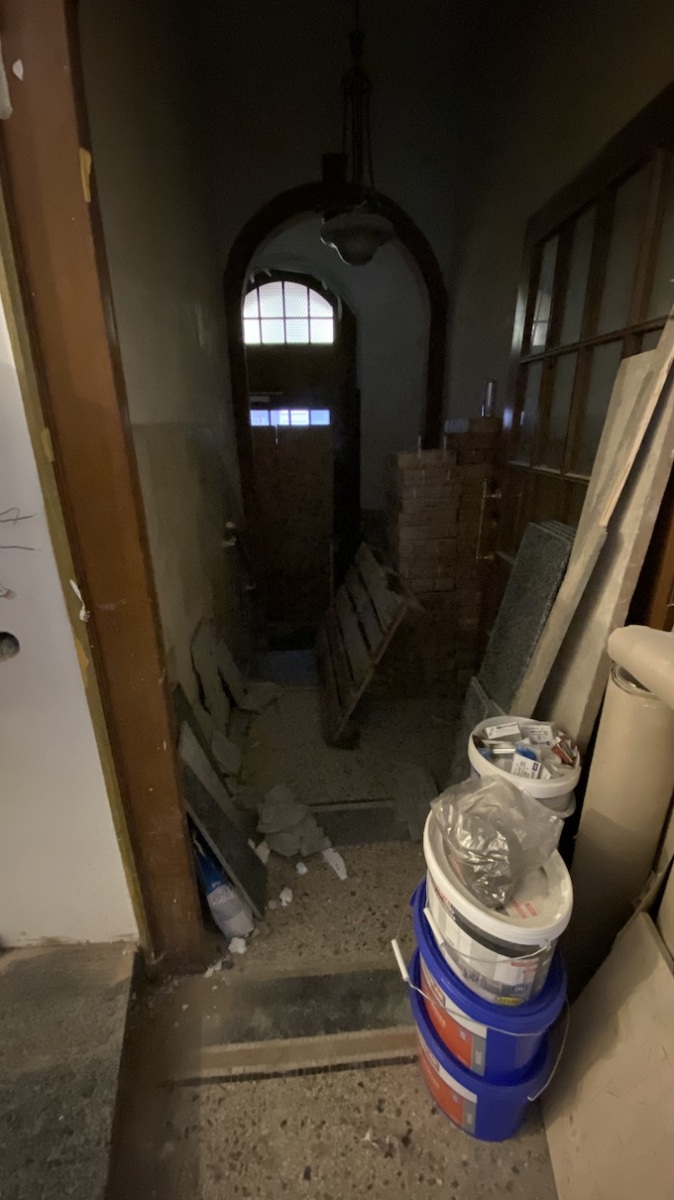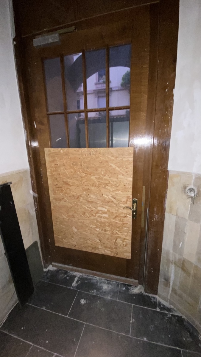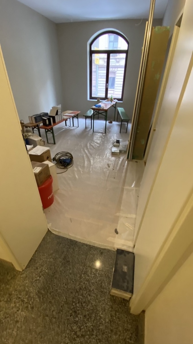 Die vordere Eingangstüre wird – wie zugesichert – bis zum 20.10. fertiggestellt und somit auch entsprechend der Anforderungen aus dem Bausoll ertüchtigt. Die Zugänglichkeit über die vordere Haustüre ist somit sichergestellt. Das Motorschloss mit der automatischen Verriegelung ist beim Lieferanten eingegangen und wird nun in die Türe gefräst, danach die fehlende Verglasung und die vorhandene Verglasung durch ein Verbundscheibensicherheitsglas ersetzt. Dies einzubauen macht allerdings erst Sinn, wenn das Verriegelungssystem eingebaut ist.