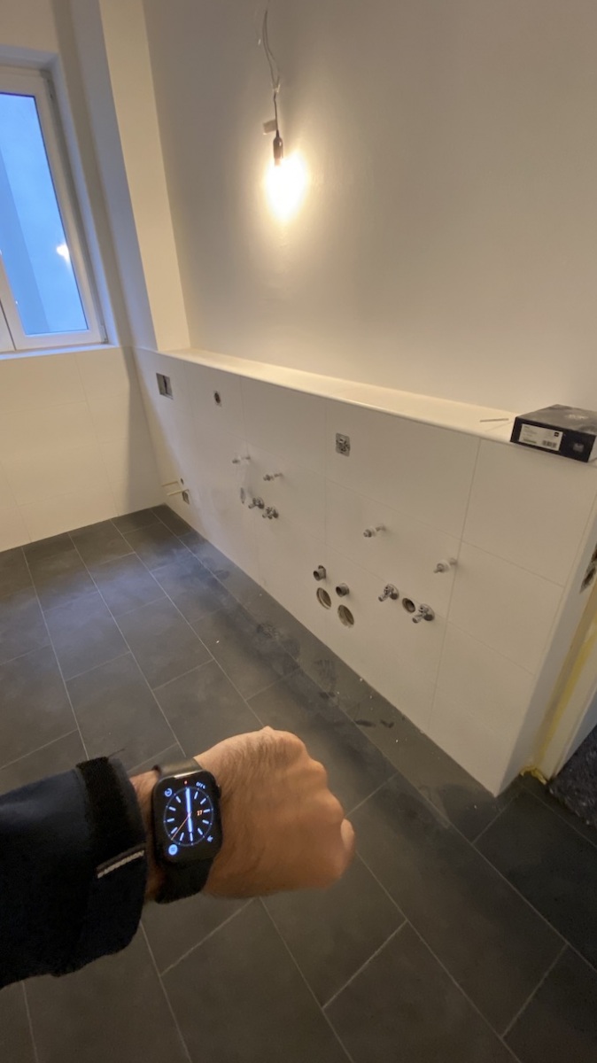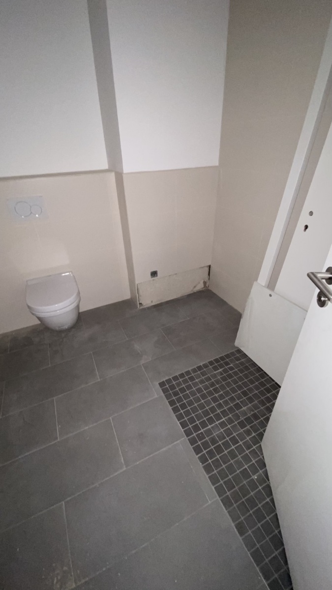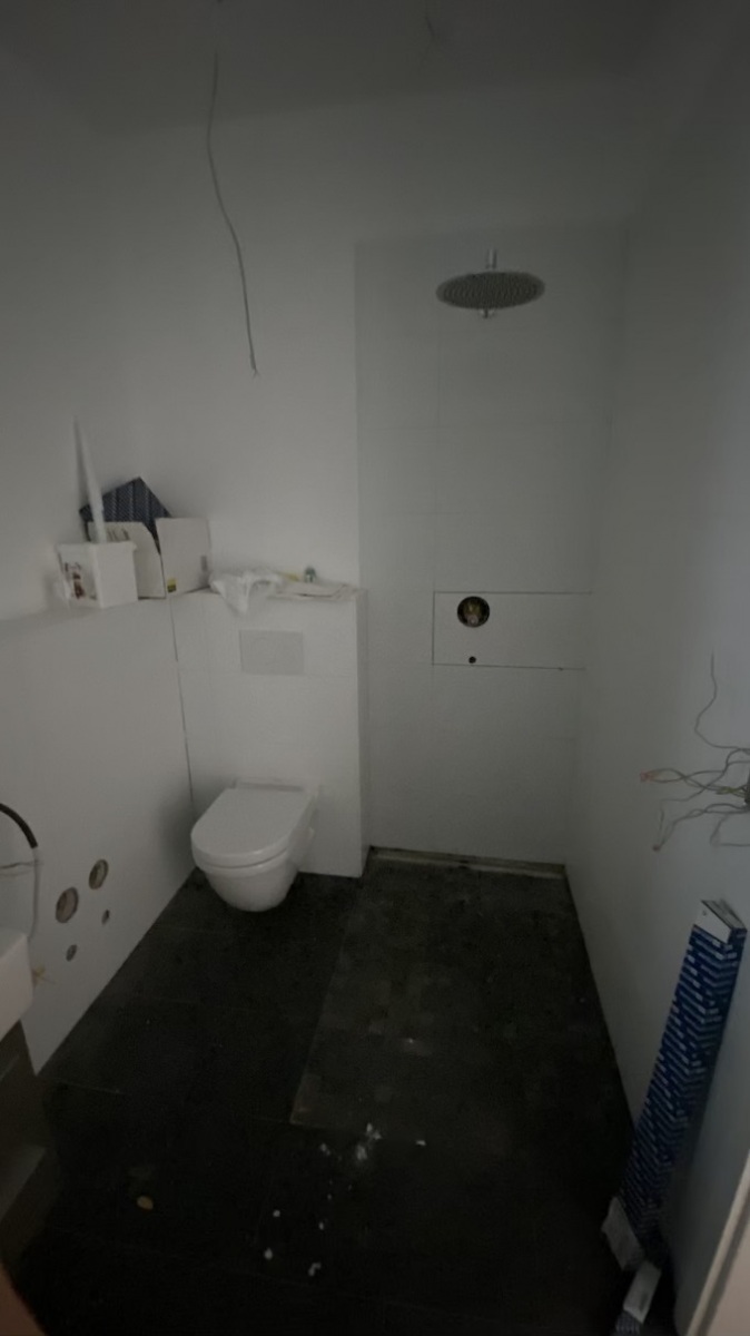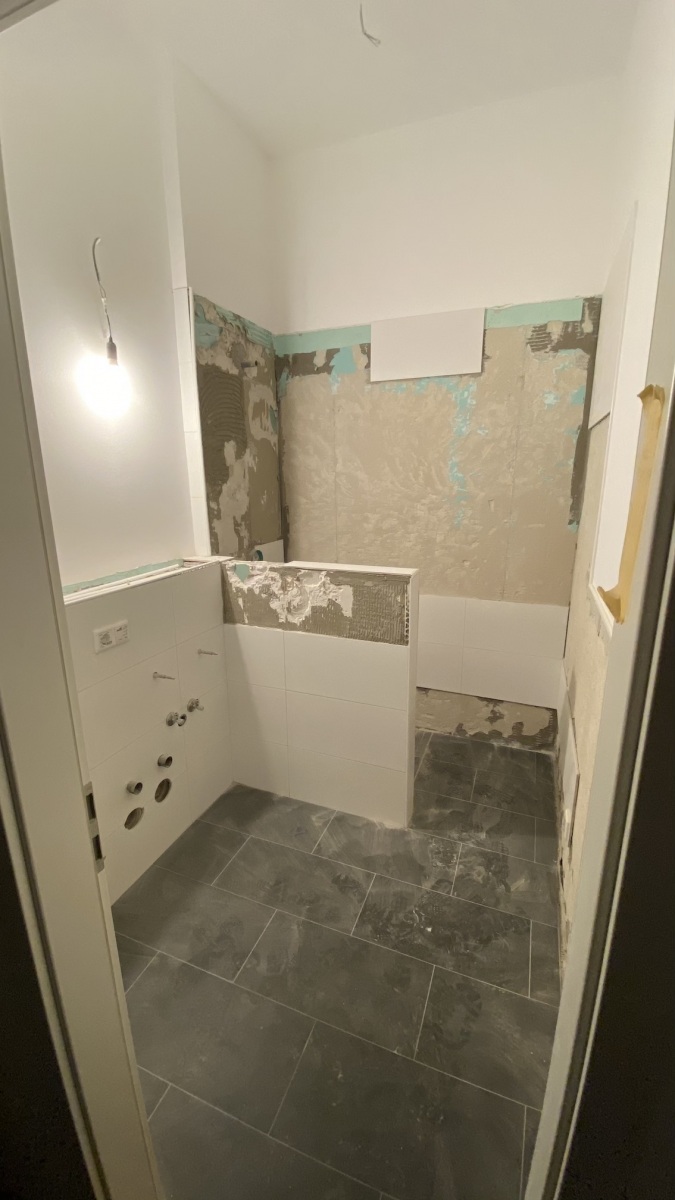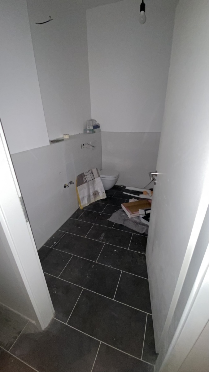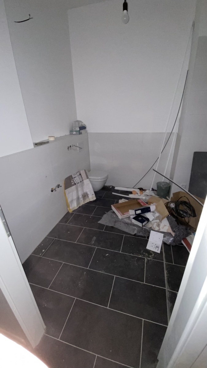 Die unteren Bilder der fehlenden Wandfliesen zeigen den Pfusch des vorherigen GU und seiner Subunternehmer auf. Wie Sie alle wissen, wurden in allen Bädern bereits die kompletten Bodenfliesen ausgetauscht, da diese mangelhaft verlegt waren.