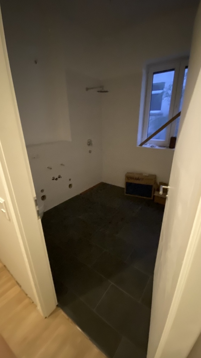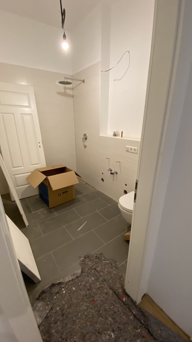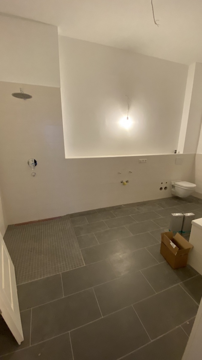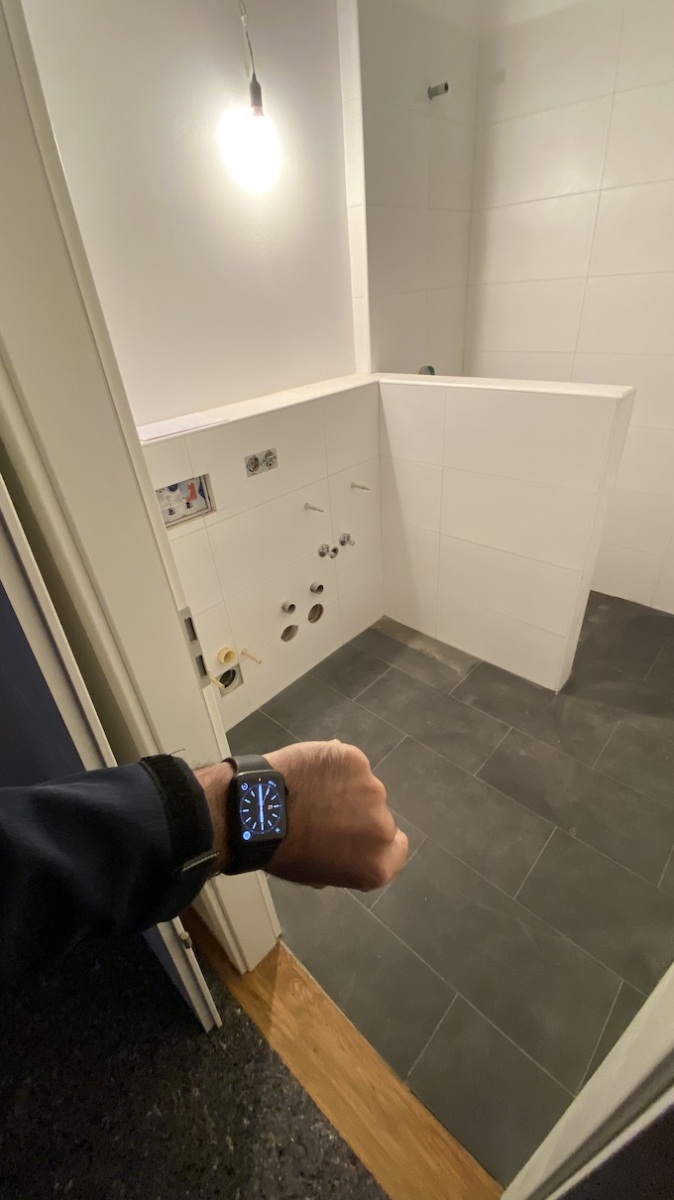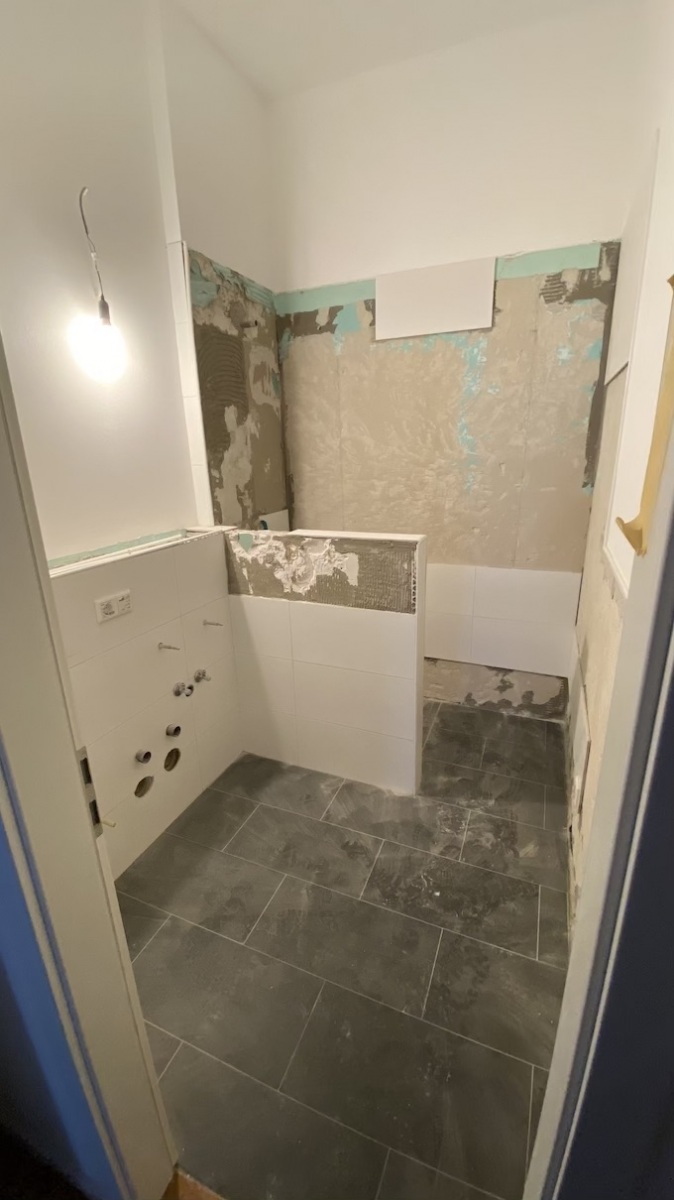 Die unteren Bilder der fehlenden Wandfliesen zeigen den Pfusch des vorherigen GU und seiner Subunternehmer auf. Wie Sie alle wissen, wurden in allen Bädern bereits die kompletten Bodenfliesen ausgetauscht, da diese mangelhaft verlegt waren.