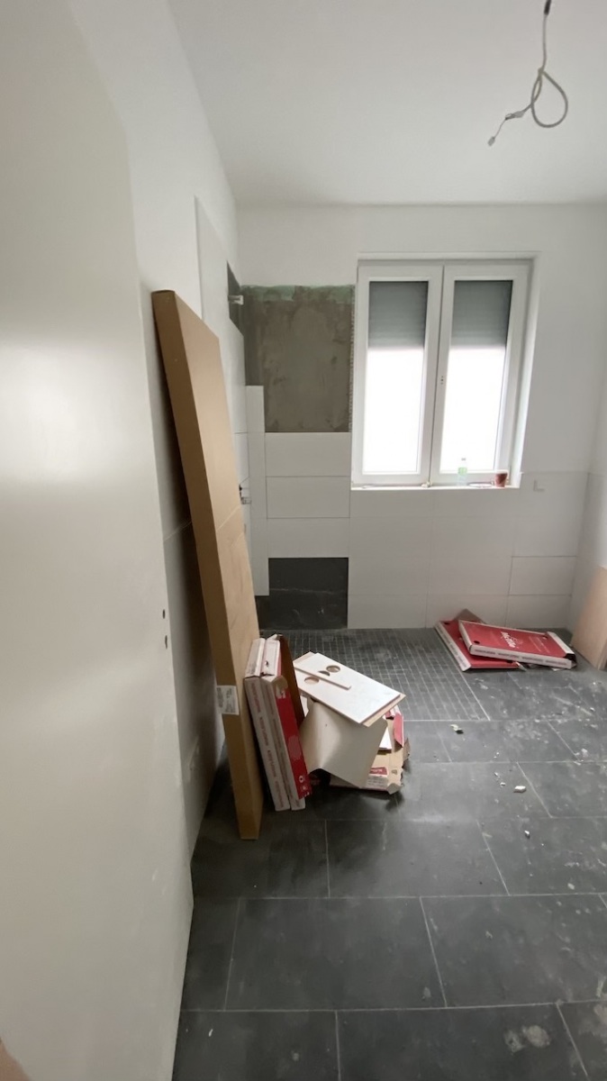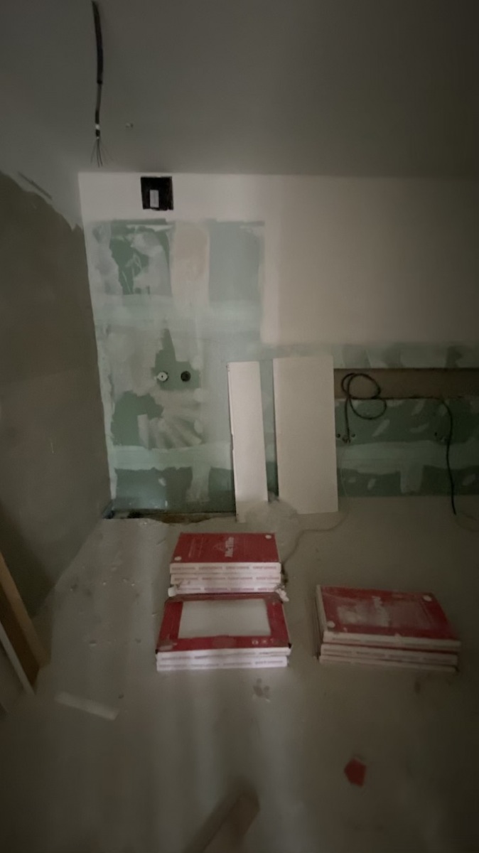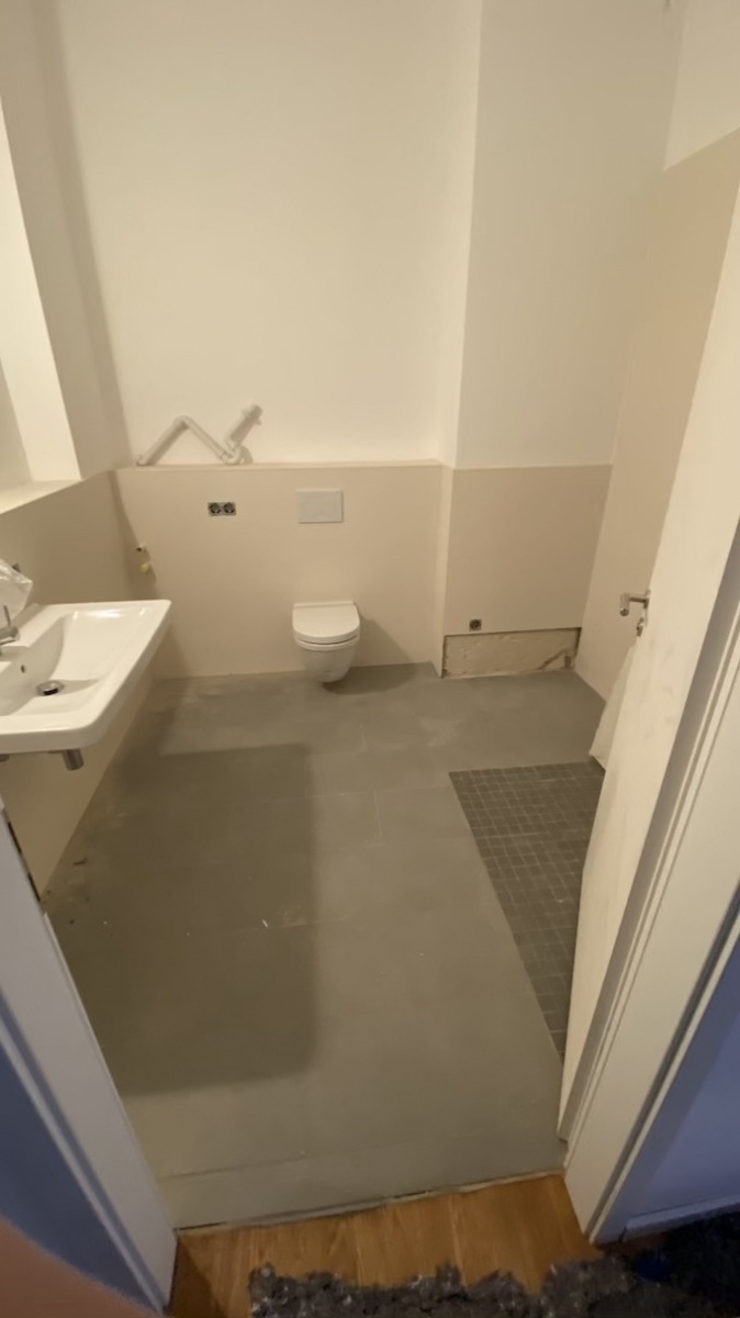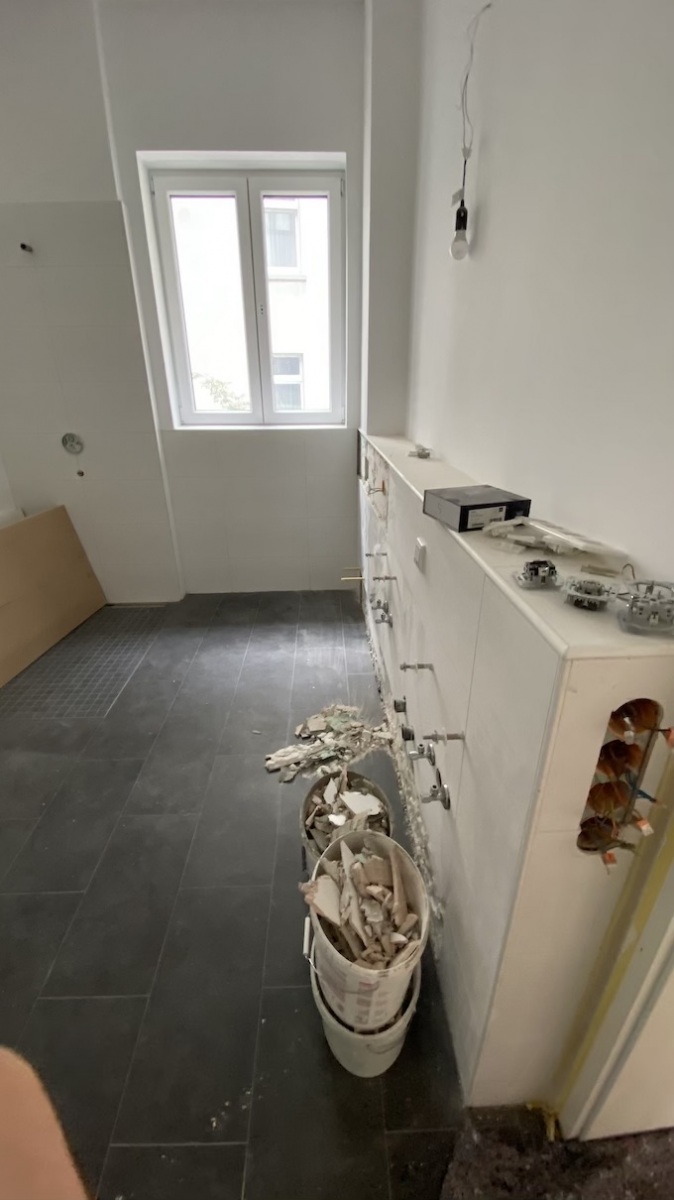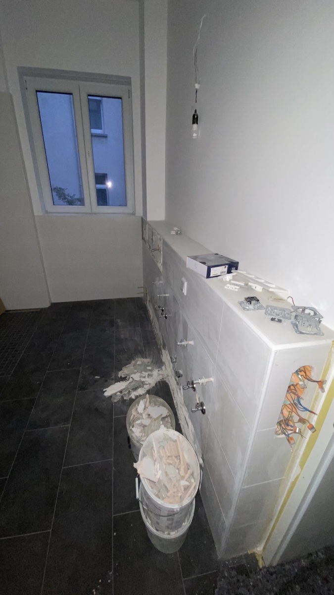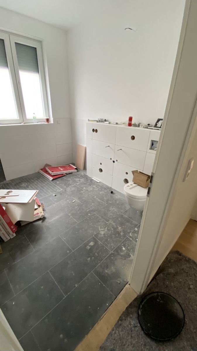 Die unteren Bilder der fehlenden Wandfliesen zeigen den Pfusch des vorherigen GU und seiner Subunternehmer auf. Wie Sie alle wissen, wurden in allen Bädern bereits die kompletten Bodenfliesen ausgetauscht, da diese mangelhaft verlegt waren.