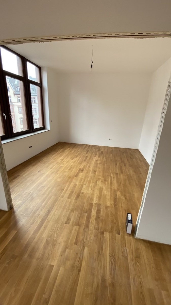 Bei den Parkettarbeiten wird die Qualität der Schleifarbeiten erst nach dem Auftragen des Öls oder wie an der Wohnung 10 mit eingefärbtem Öl sichtbar – wenn hier das Ergebnis nicht einwandfrei ist, muss nachgeschliffen und nachgeölt werden. Auch hier steht die Qualität im Vordergrund und nicht das schnelle Ergebnis. In Wohnung 10 wurde nach Sichtbarwerden der Riefen und Schleifspuren am Tag nach dem Einfärben und Ölen das Parkett erneut angeschliffen und am Dienstag erneut mit eingefärbtem Öl behandelt und heute fertiggestellt. Scheinbar ist also eigentlich nichts auf der Baustelle passiert – faktisch aber schon, wenn man sich das Ergebnis des Bodens nun heute anschaut.