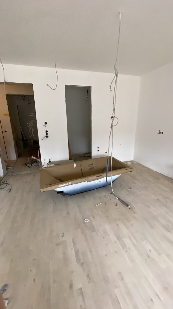 Die Badewanne in Whg 14 wurde heute angeliefert, das übrige Material für die Badewannen in Whg 14/15 wird morgen früh angeliefert. In dieser Lieferung sind ebenfalls die beiden fehlenden Waschbecken von Herrn T—— dabei.