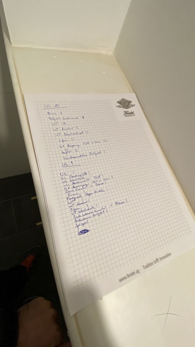 Das Thema der defekten Wandfliesen haben Sie ja mitbekommen, es sind über 40 Wandfliesen (alt, von D——- verlegt) gerissen, lose oder sonstige beschädigt und müssen ausgetauscht werden.