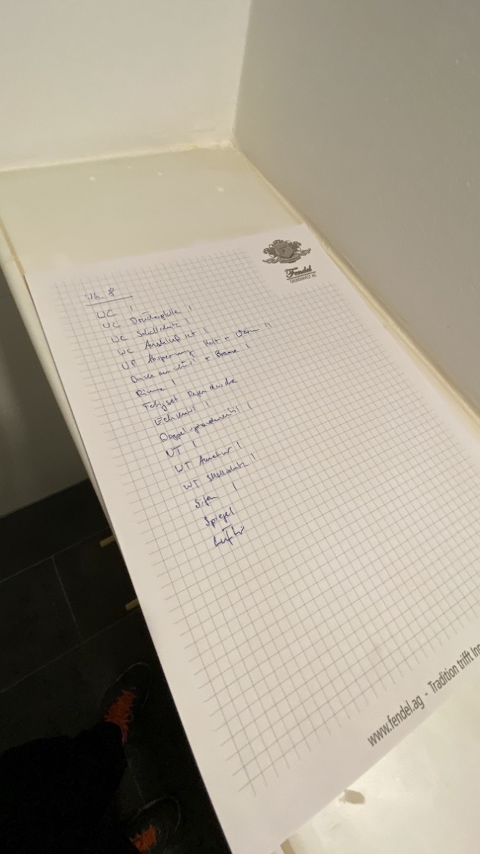 Zum Vierten: Ich habe die Trockenbauer vom Hinterhaus nach deren Feierabend angesprochen, ob Sie nicht auch bei der Mainlust arbeiten wollen, da sie ja hier kurz vor Fertigstellung seien. Dies haben sie verneint, da sie a) keine Kapazitäten frei hätten und b) keine Lust hätten, den Pfusch von anderen auszubaden.